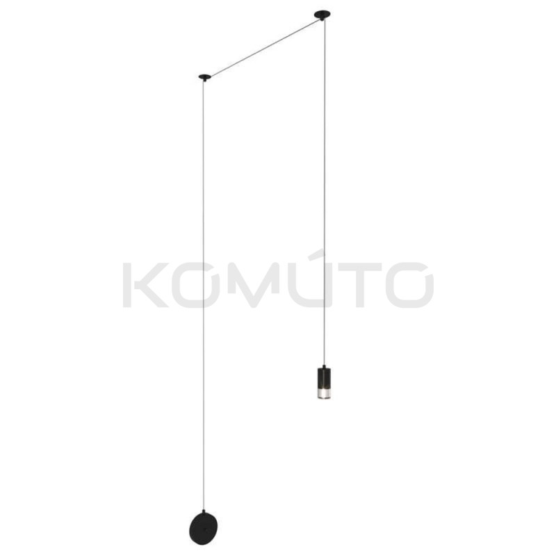 Kinkiet w formie lampy ściennej zawieszony jest na czarnym delikatnym przewodzie PVC, który elastycznie dostosowuje się do dowolnej konfiguracji.