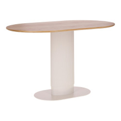 Stół Gativel to połączenie nowoczesnego stylu i praktyczności. Jego owalny blat (120 x 70 cm) zapewnia komfortowe miejsce dla 5-6 osób, dzięki czemu sprawdzi się zarówno w dużych rodzinach, jak i podczas spotkań towarzyskich. Wykończenie fornirem dębowym w kolorze białym dodaje mu naturalnego uroku, a jednocześnie wpisuje się w trendy aranżacyjne.