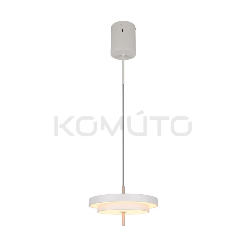 Lampa wisząca Move 40 zachwyca minimalistyczną formą inspirowaną stylem art-deco. Metalowa konstrukcja w odcieniu szarym lub czarnym podkreśla geometryczną harmonię, a średnica większego koła 40 cm sprawia, że światło wypełnia wnętrze miękkim blaskiem.