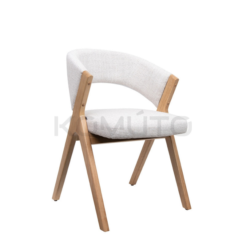 Krzesło do jadalni FIRENZE to subtelna gra światła, faktury i proporcji. Jasna, beżowa tapicerka przywodzi na myśl miękkość naturalnych tkanin, a drewniana konstrukcja stanowi jej stabilny, organiczny fundament. Całość tworzy kompozycję, która jest jednocześnie spokojna i wyrafinowana.